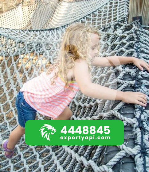 Export Yapı’nın oyun parkı fileleri, yumuşak dokulu, UV katkılı polipropilen (PP) iplikten üretilir. Çocuk cildine zarar vermez, güvenli ve dayanıklıdır.
